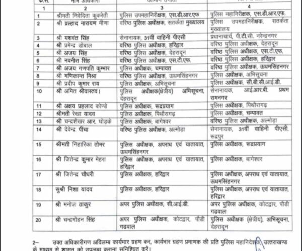 देहरादून में 16 दिन में 5 हत्याओं के बाद धामी सरकार का बड़ा एक्शन, SSP बदले, कानून-व्यवस्था सख्त करने के दिए सख्त निर्देश।