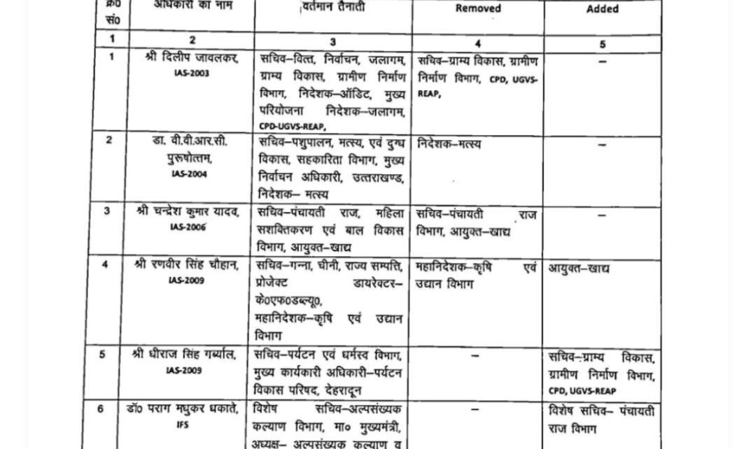 धामी सरकार का बड़ा एक्शन — शीर्ष प्रशासनिक पदों पर हुआ फेरबदल, कई अधिकारी नई तैनाती पर”