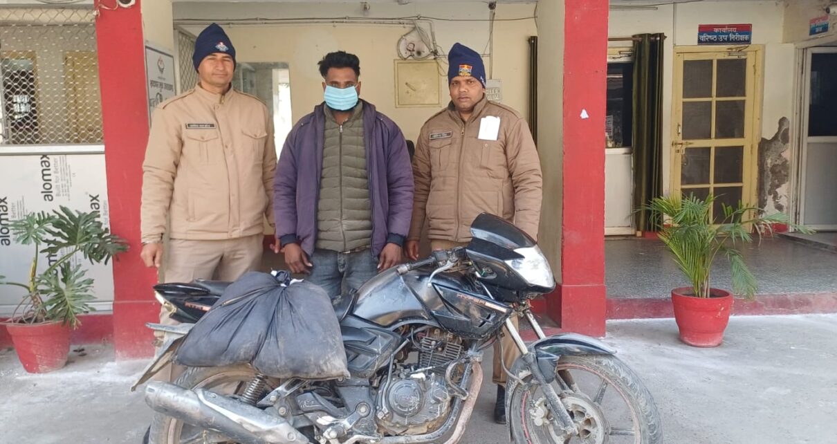 सूचना के आधार पर पुलिस टीम ने मधुवन अंडरपास, पीरूमदारा के पास घेराबंदी कर बलदेव सिंह पुत्र काला सिंह, निवासी ग्राम थारी, पीरूमदारा, थाना रामनगर को मोटरसाइकिल पर अवैध शराब ले जाते हुए गिरफ्तार किया। अभियुक्त के कब्जे से 103 पाउच अवैध शराब बरामद की गई।