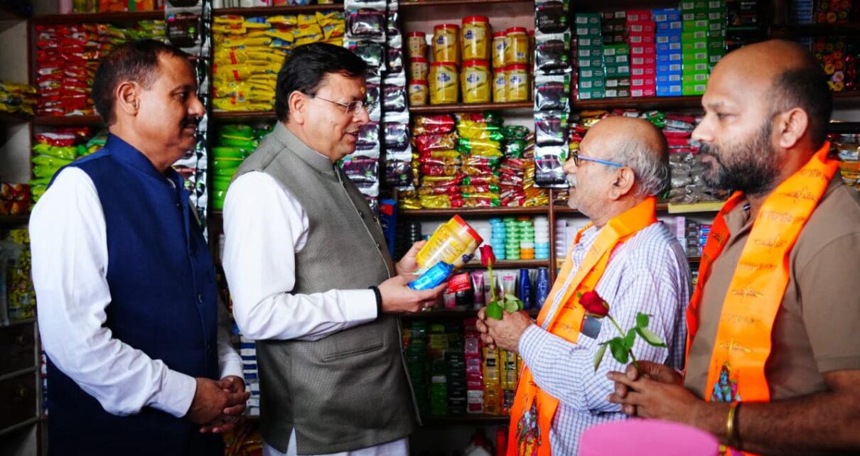 मुख्यमंत्री धामी ने कुँआवाला बाजार में चलाया स्वदेशी अपनाओ और जीएसटी नई दरों का जनजागरूकता अभियान