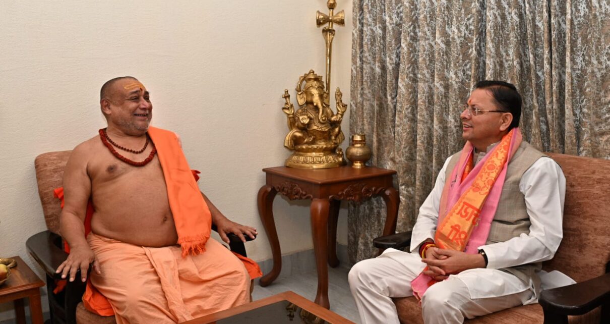 सीएम पुष्कर सिंह धामी ने कनखल में जगद्गुरु स्वामी राजराजेश्वराश्रम महाराज से लिया आशीर्वाद