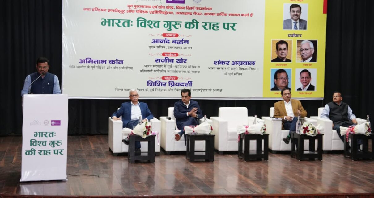 देहरादून, सर्वे चौक स्थित ऑडिटोरियम में दून पुस्तकालय एवं शोध केंद्र, चिंतन रिसर्च फाउंडेशन तथा Indian Institute of Public Administration के  तत्वावधान में “भारत: विश्व गुरु की राह पर” विषय पर एक उच्चस्तरीय विचार गोष्ठी का आयोजन किया गया।