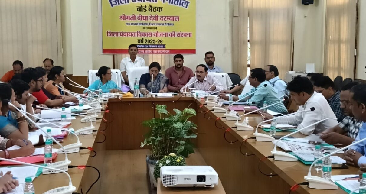 हल्द्वानी। काठगोदाम सर्किट हाउस में बुधवार को जिला पंचायत की आंतरिक बोर्ड बैठक अध्यक्ष दीपा देवी दरम्वाल की अध्यक्षता में संपन्न हुई। बैठक में सदस्यों द्वारा अपने-अपने क्षेत्रों की समस्याएं रखी गईं और कुल 10 प्रस्तावों पर चर्चा की गई।